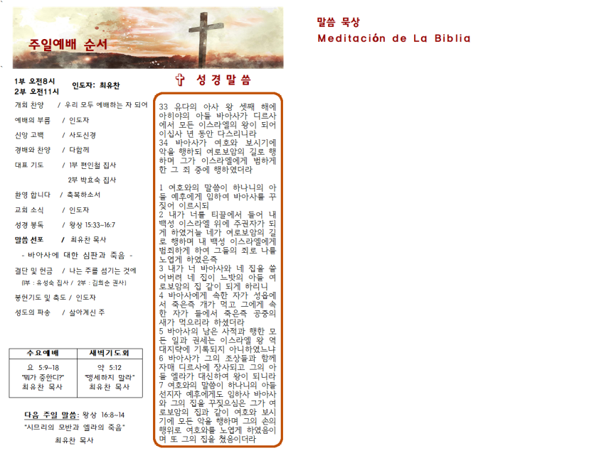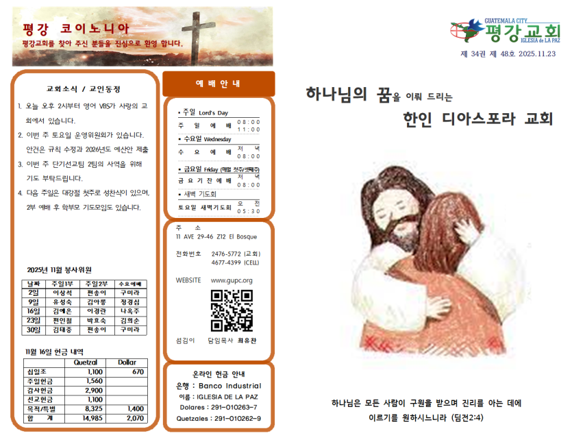 2025년 11월 23일 주일예배 주보 페이지 정보 작성자 과테말라평강교회 댓글 0건 조회 1회 작성일 25-11-23 06:49 목록 본문 2025년 11월 23일 주일예배 주보 다음글2025년 11월 16일 주일예배 주보 25.11.16 댓글 0 댓글목록 등록된 댓글이 없습니다.