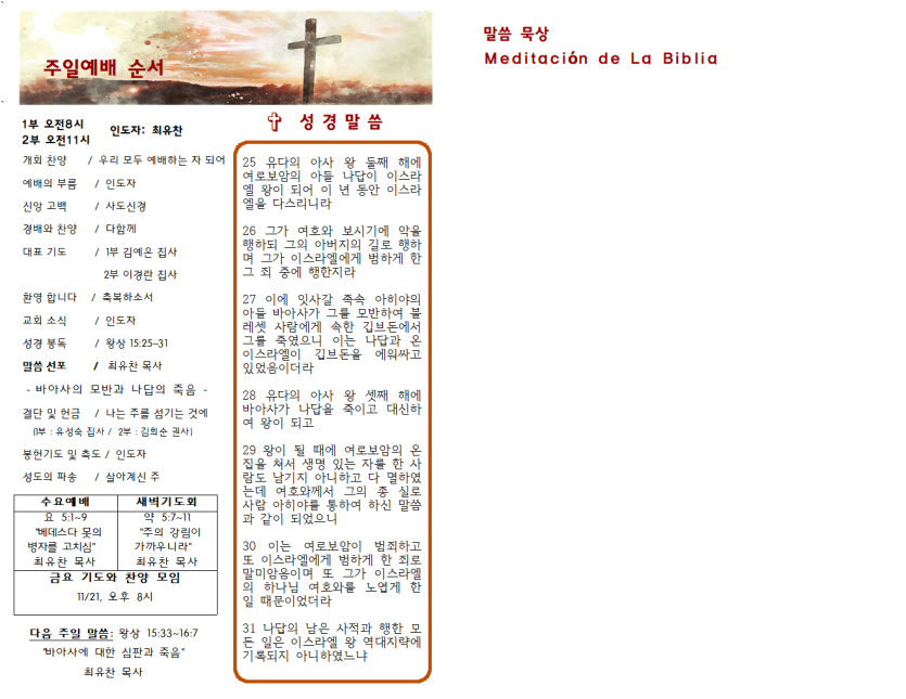 2025년 11월 16일 주일예배 주보 페이지 정보 작성자 과테말라평강교회 댓글 0건 조회 10회 작성일 25-11-16 07:21 목록 본문 2025년 11월 16일 주일예배 주보 다음글2025년 11월 9일 주일예배 주보 25.11.07 댓글 0 댓글목록 등록된 댓글이 없습니다.